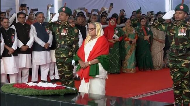 সর্বকালের সর্বশ্রেষ্ঠ বাঙালি স্বাধীনতার স্থপতি জাতির পিতার প্রতি শ্রদ্ধার নিদর্শনস্বরূপ সেখানে কিছুক্ষণ নীরবে দাঁড়িয়ে থাকেন প্রধানমন্ত্রী।